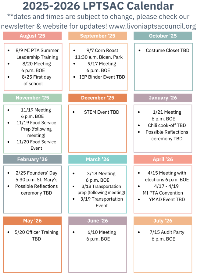 Meeting dates for the 2025 – 2026 school year are as follows: