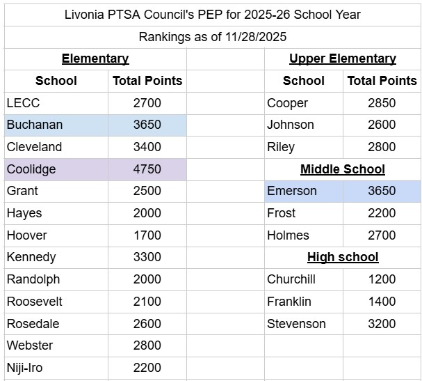 PEP Standings as of November 28, 2025: